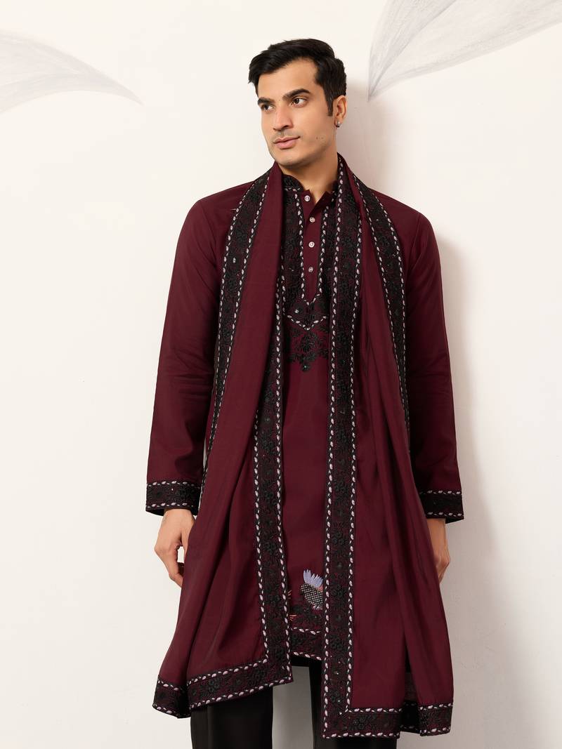 | Product Name | Maroon Viscose Silk Thread & Sequins Embroidered Work Function Festival Marriage Party Wear Straight Kurta Dupatta | |