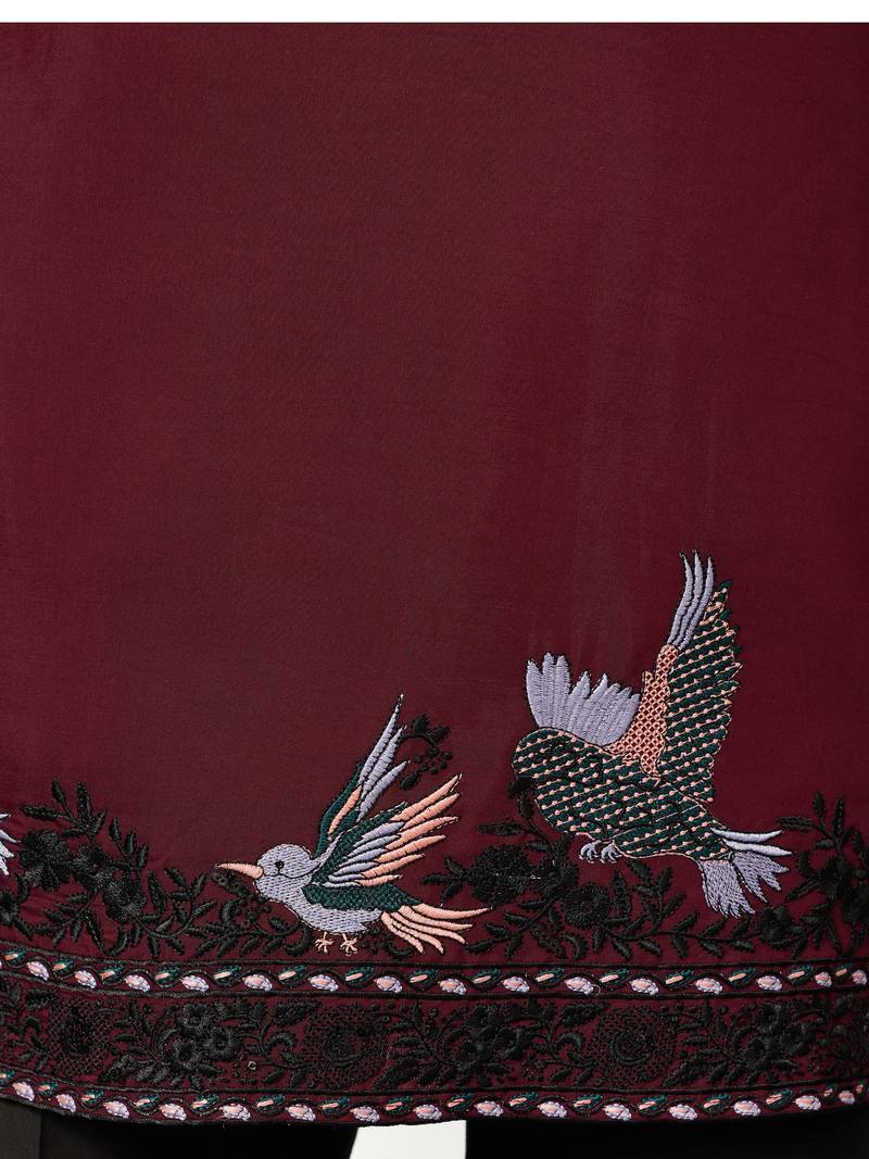 Maroon viscose silk thread & sequins embroidered work function festival marriage party wear straight kurta dupatta