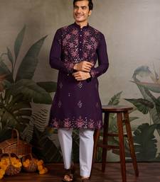| Product Name | Purple Viscose Silk Real Mirror With Thread & Sequins Embroidered Work Festival Marriage Party Wear Straight Mens Kurta | |