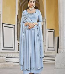 Sky blue thread and sequince embroidered work georgette anarkali long salwar suit dupatta stitched gown