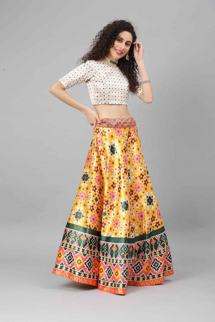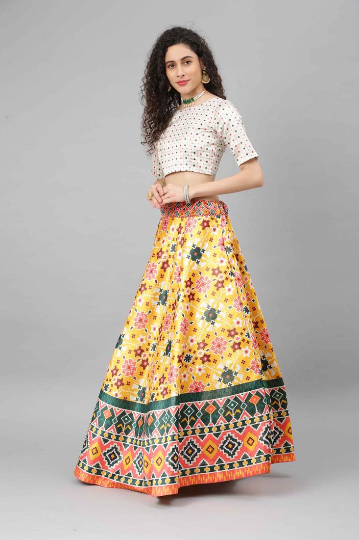 | Product Name | Shubhkala Yellow Digital Printed Art Silk Bridal Lehenga & Unstitched Blouse With Dupatta | |