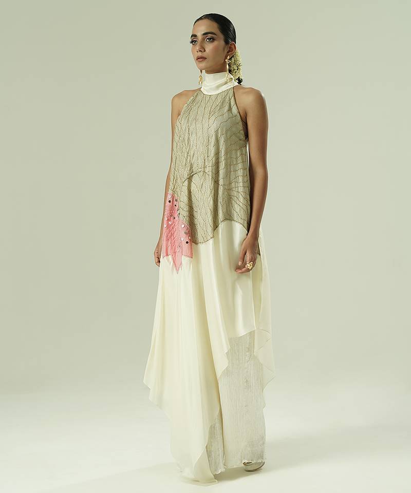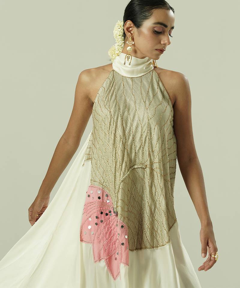 Ivory embroidered organza co ord set