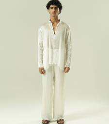 Ivory plain silk kurta pajama