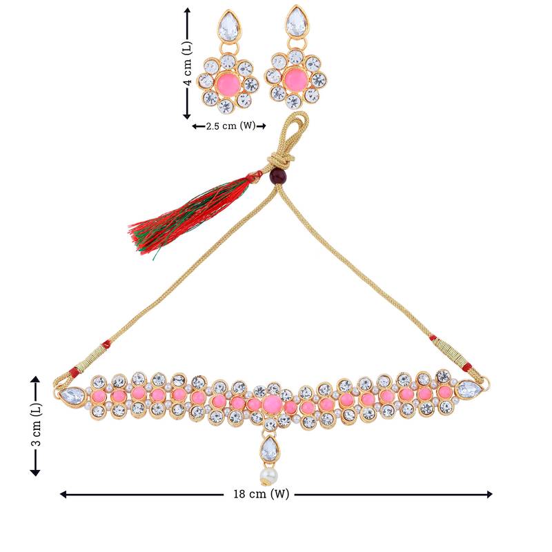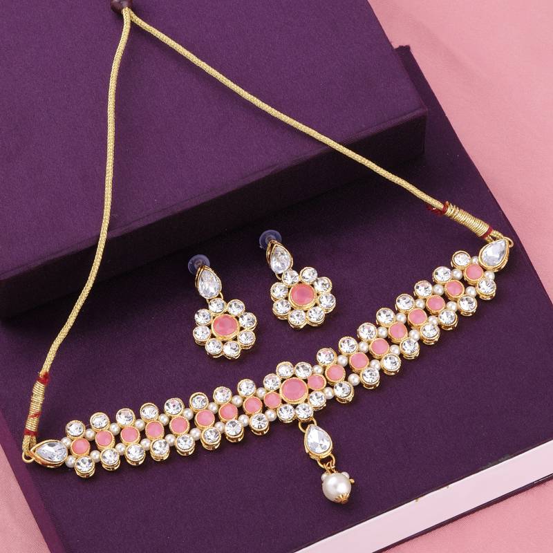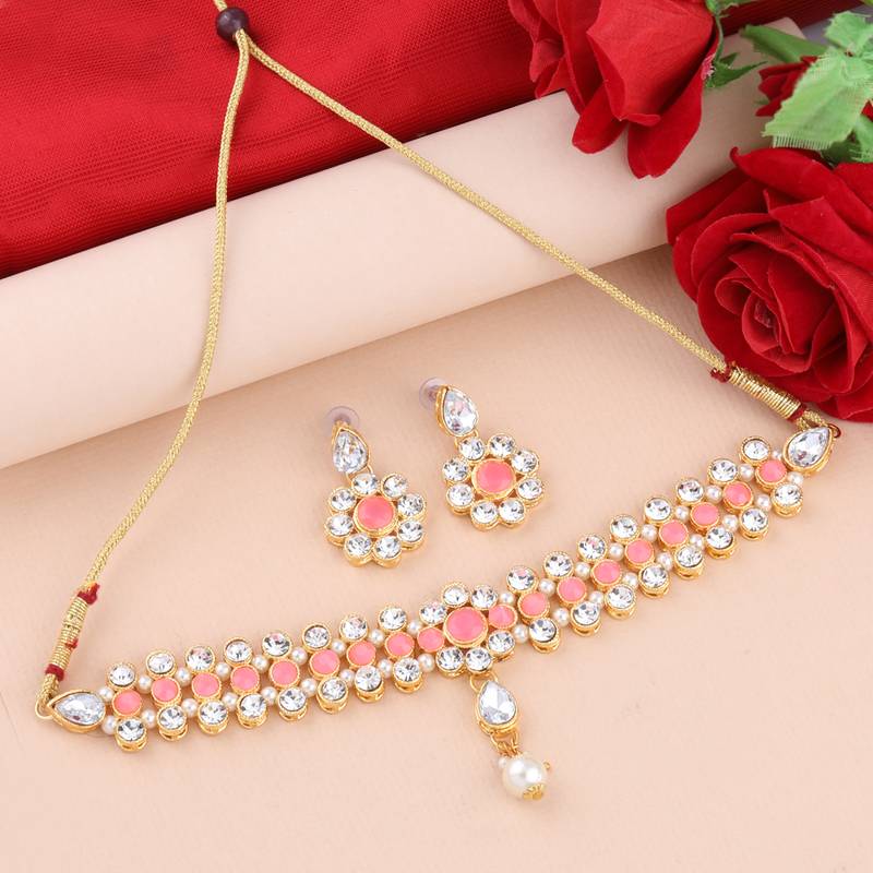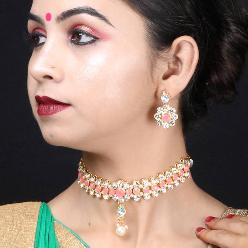 | Product Name | Silver Shine Gold Plated Party Wear Peachcolor Choker Jewellery Set For Girl And Women | |