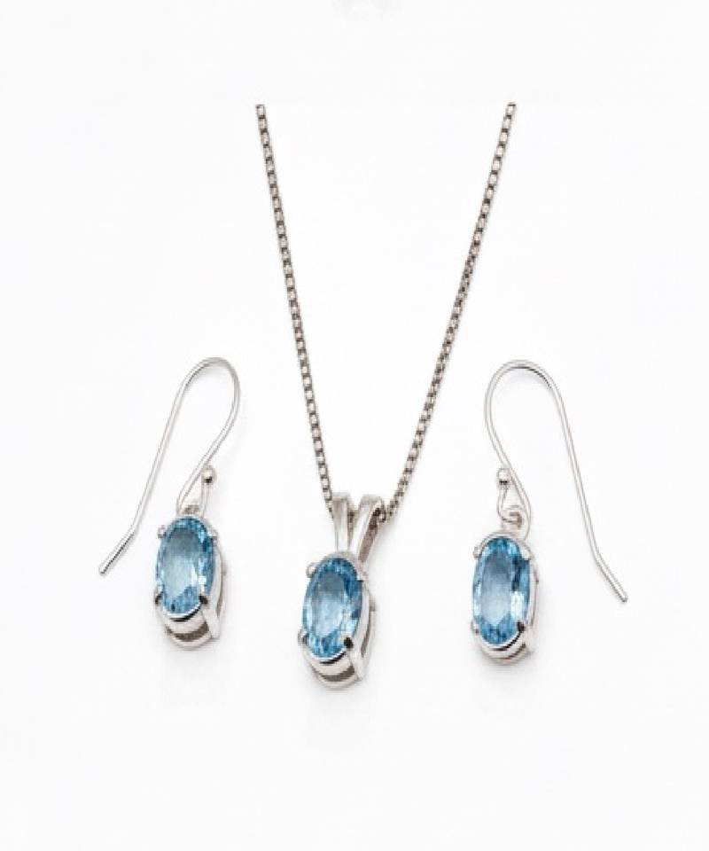 | • | Package details | : | 1 Pair Of Blue Topaz Earrings / 1 Pendant With Chain / 1 Brand Authenticity Certificate |