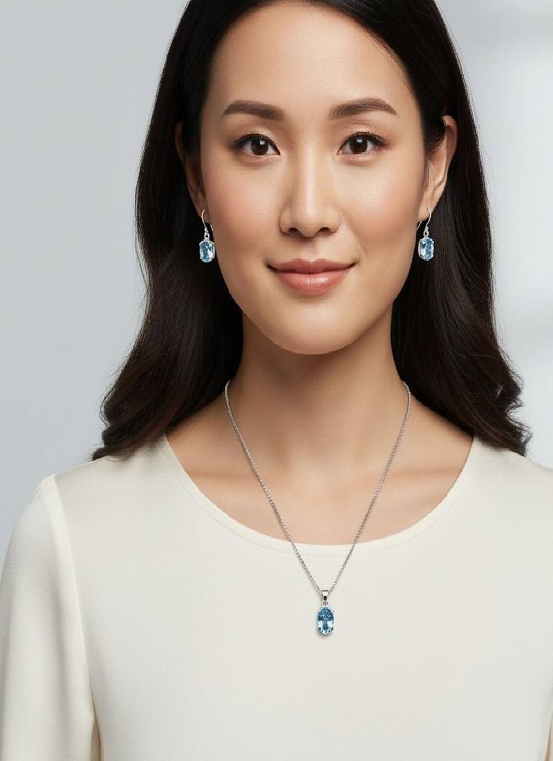 | Package Details | 1 Pair Of Blue Topaz Earrings / 1 Pendant With Chain / 1 Brand Authenticity Certificate | |