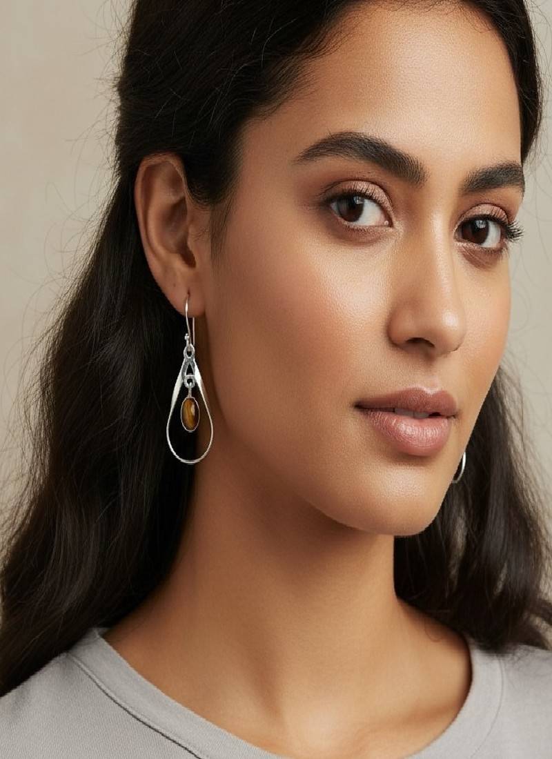| Product Name | Pure 925 Silver Tiger Eye Danglers Earrings For Women | |
