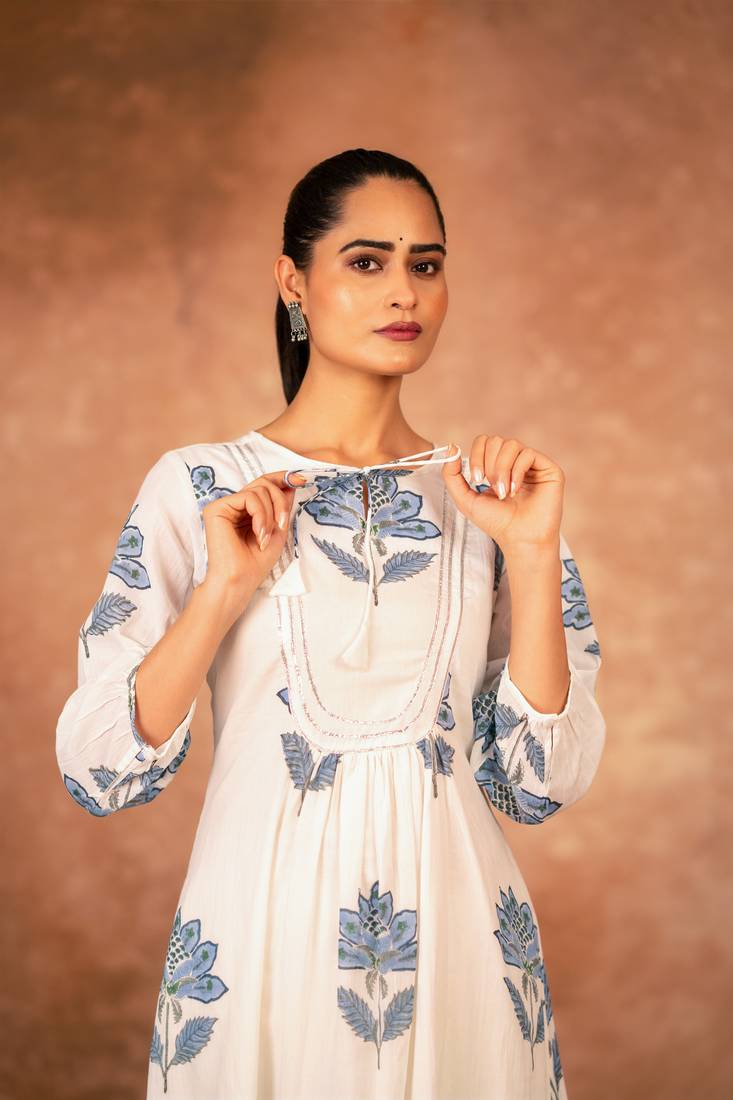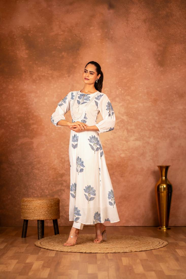 | Product Name | Blue Floral Hand Block Printed Cotton Kurta Pant Set Of 2 | |