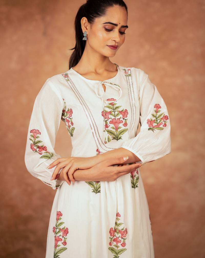 | Product Name | Off White Pink Floral Hand Block Printed Cotton Kurta Pant Set Of 2 | |