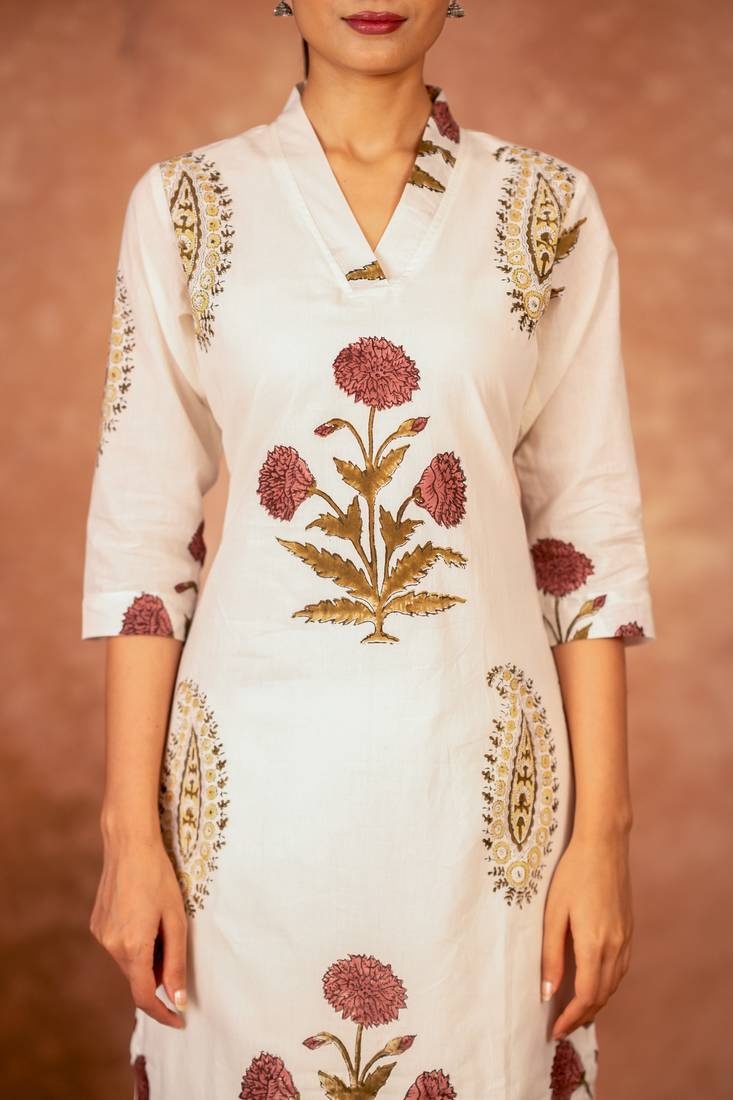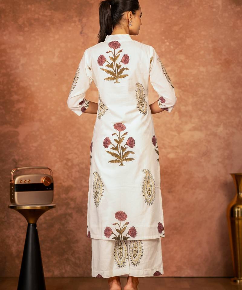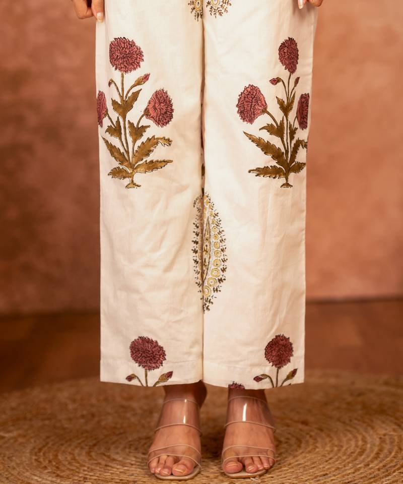 | Product Name | Off White Red Floral Hand Block Printed Cotton Kurta Pant Set Of 2 | |