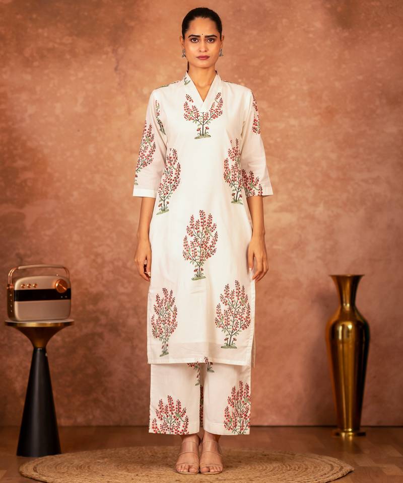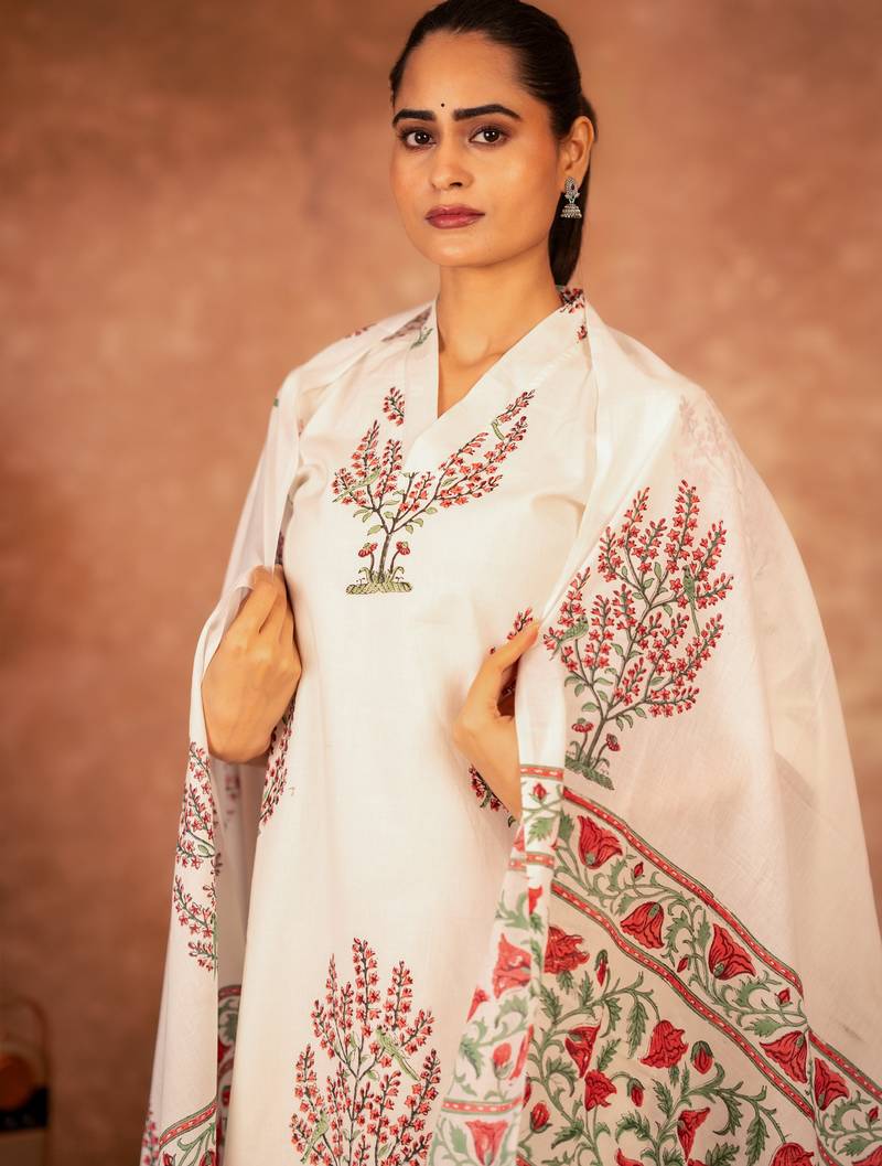 | Product Name | Off White Red Hand Block Printed Cotton Suit Set Of 3 | |