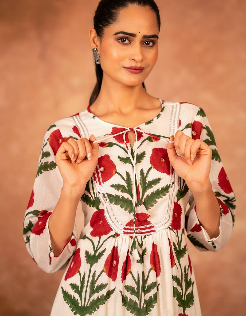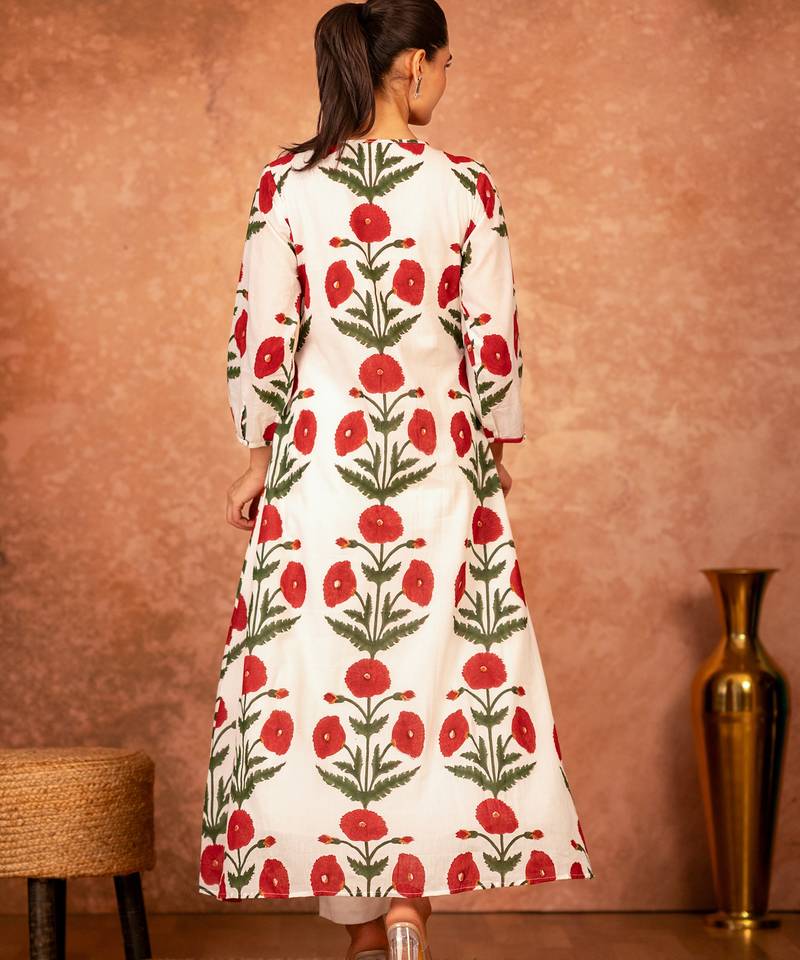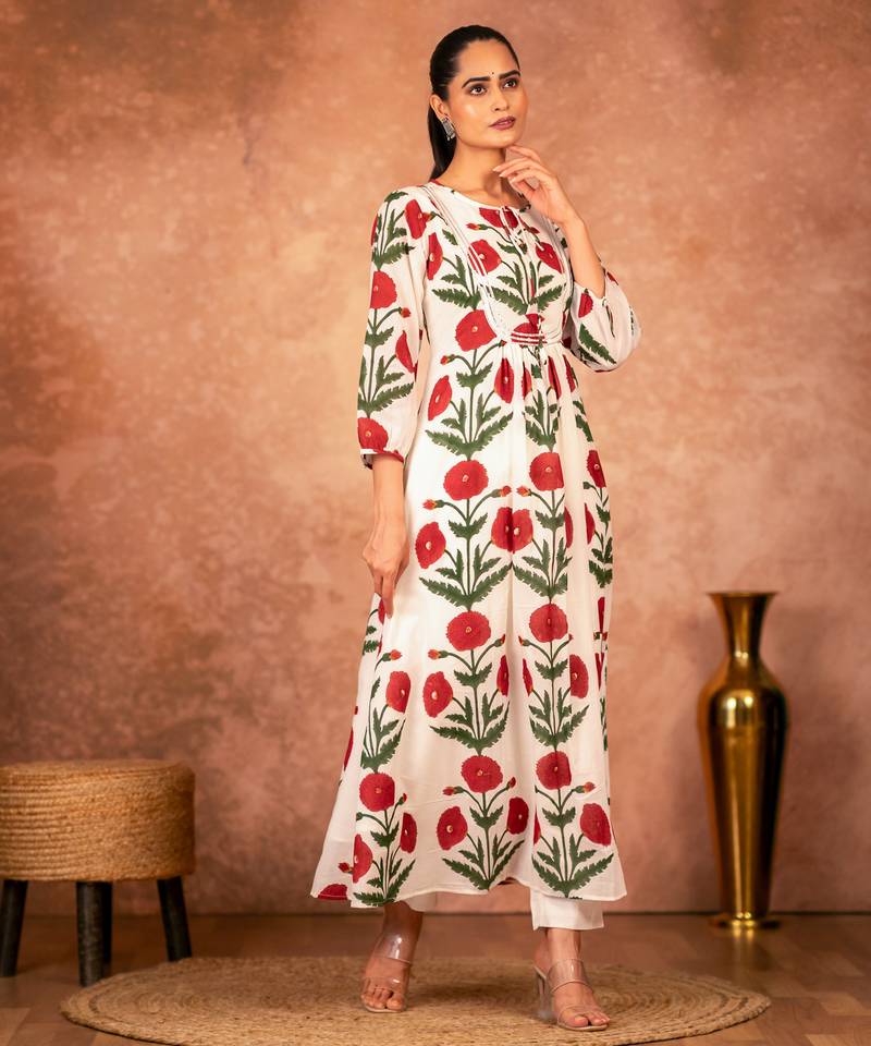 | Product Name | Red Rose Floral Hand Block Printed Cotton Kurta Pant Set Of 2 | |