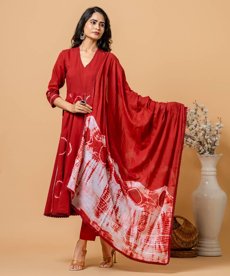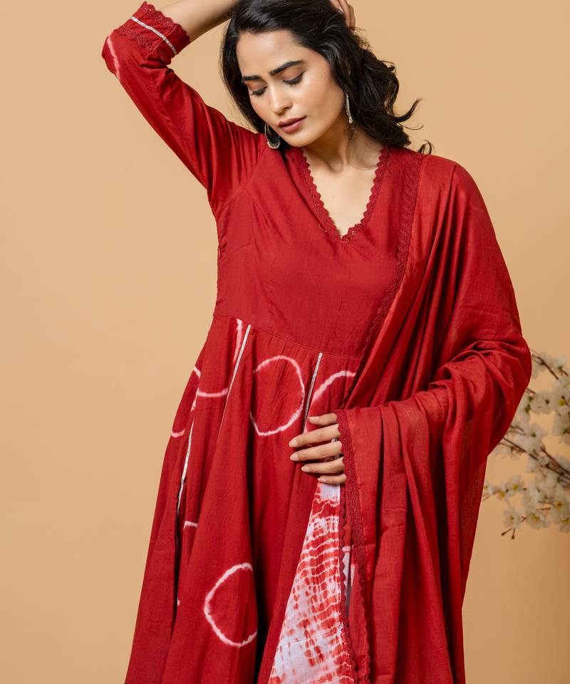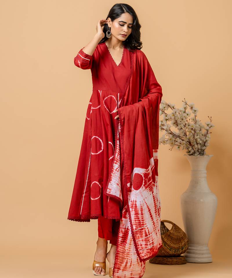 | Product Name | Red Tie & Dye Cotton Suit Set Of 3 | |