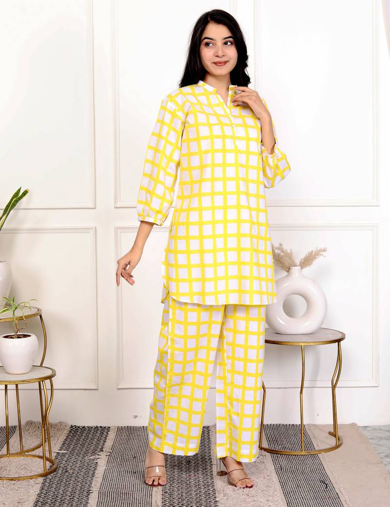 | Product Name | Yellow Check Hand Block Printed Cotton Co Ord Set | |