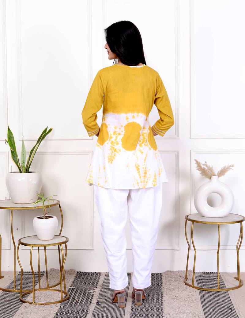 Yellow tie & dye white cotton co-ord set