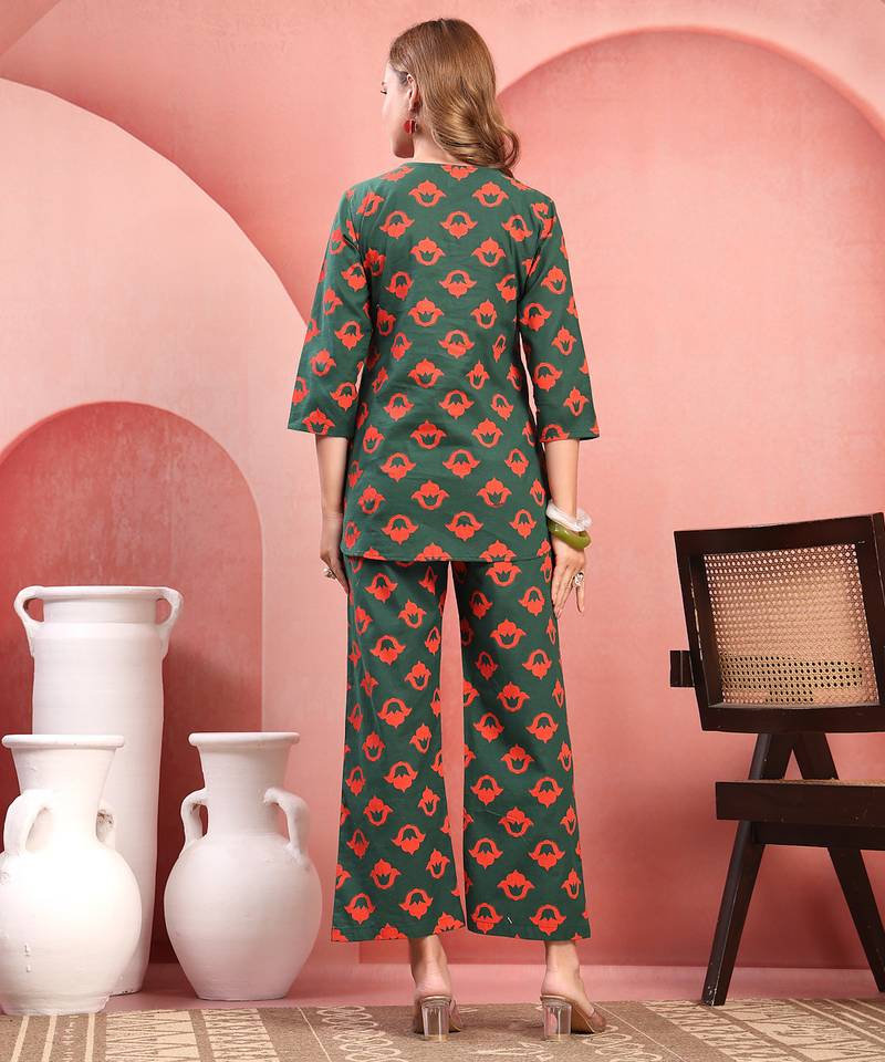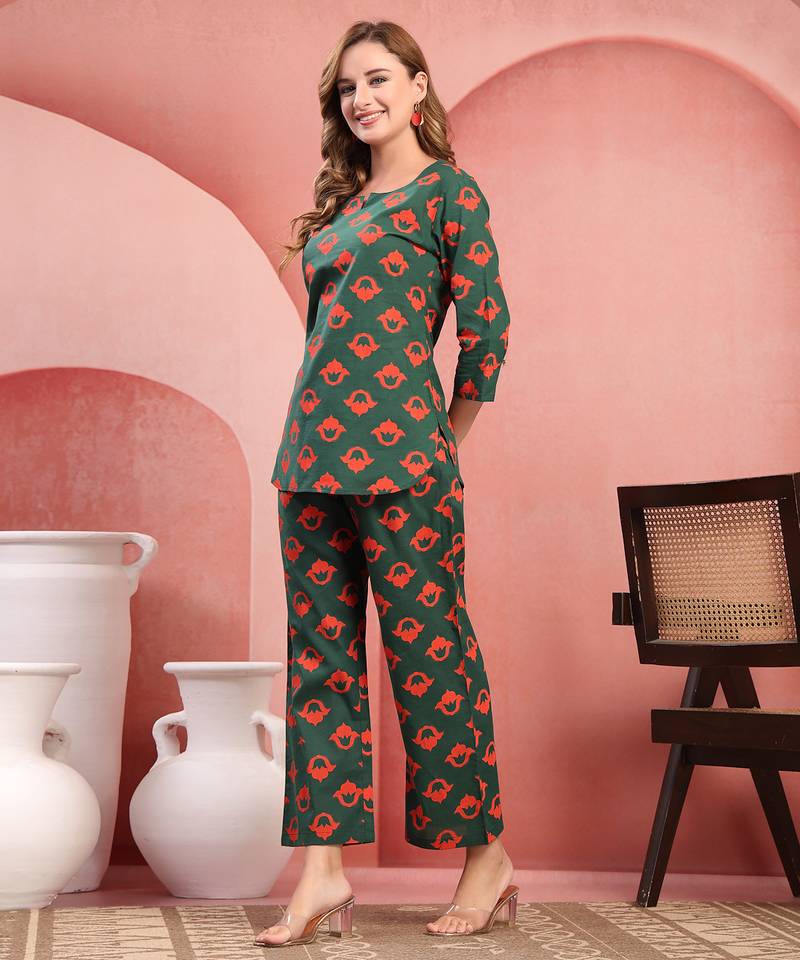 | Product Name | Women Green Cotton Floral Printed Co Ord Sets Stitched | |