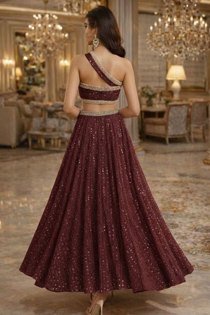 Product Name Deep Maroon Sequin Embellished Shimmer Lehenga Set