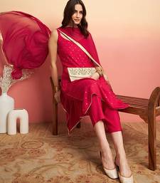 | Product Description | This Kurta Set Consists Of Kurta, Trousers And Dupatta Kurta Design Red Kurta Printed Round Neck Shoulder Straps Straight Shaped Calf Length With Straight Hem And Side Slits Machine Weave Regular Viscose Rayon Trousers Design: Red Solid Trousers Elasticated Waistband Slip On Closure Dupatta Design: Red Dupatta Solid With Taping Border |