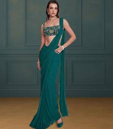 Emerald green crepe pre draped saree set
