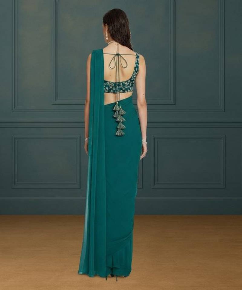 | Product Name | Emerald Green Crepe Pre Draped Saree Set | |