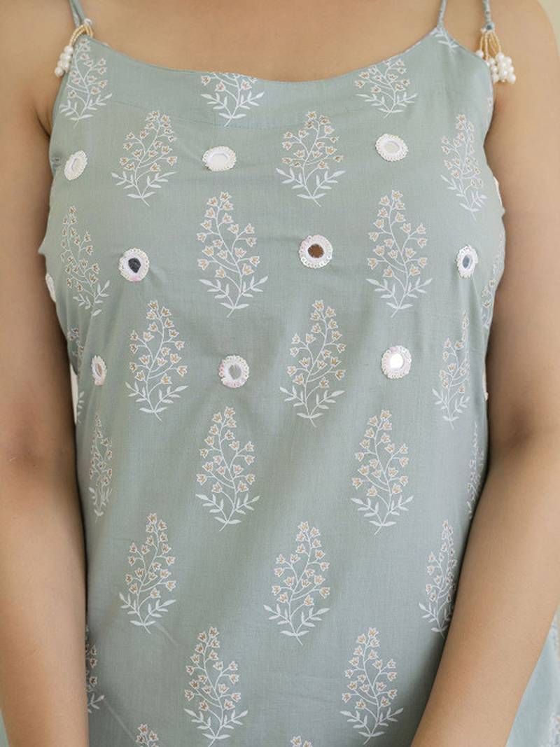 | Product Description | Grey & White Printed Kurta With Trousers & Dupatta Floral Printed Grey Kurta Shape Square Neck Sleeveless Slip On Closure |