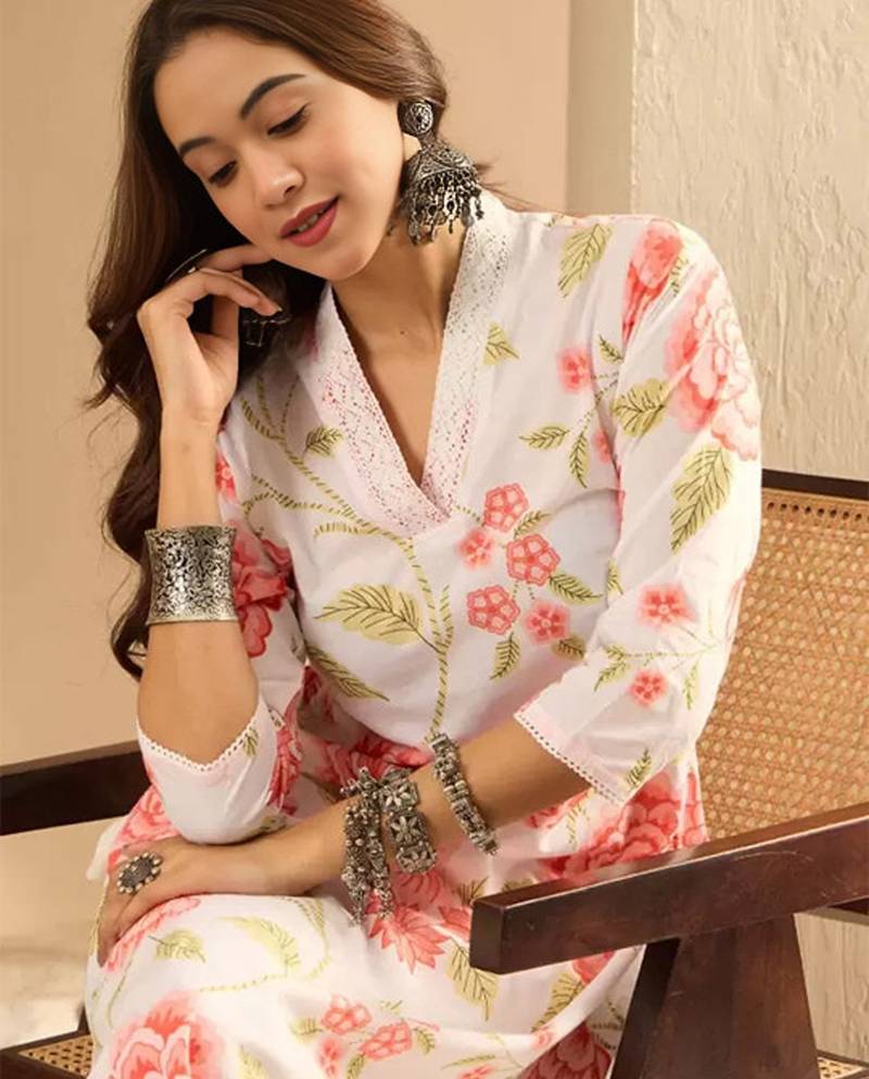| Product Name | Floral Printed Cotton V Neck Straight Kurta | |