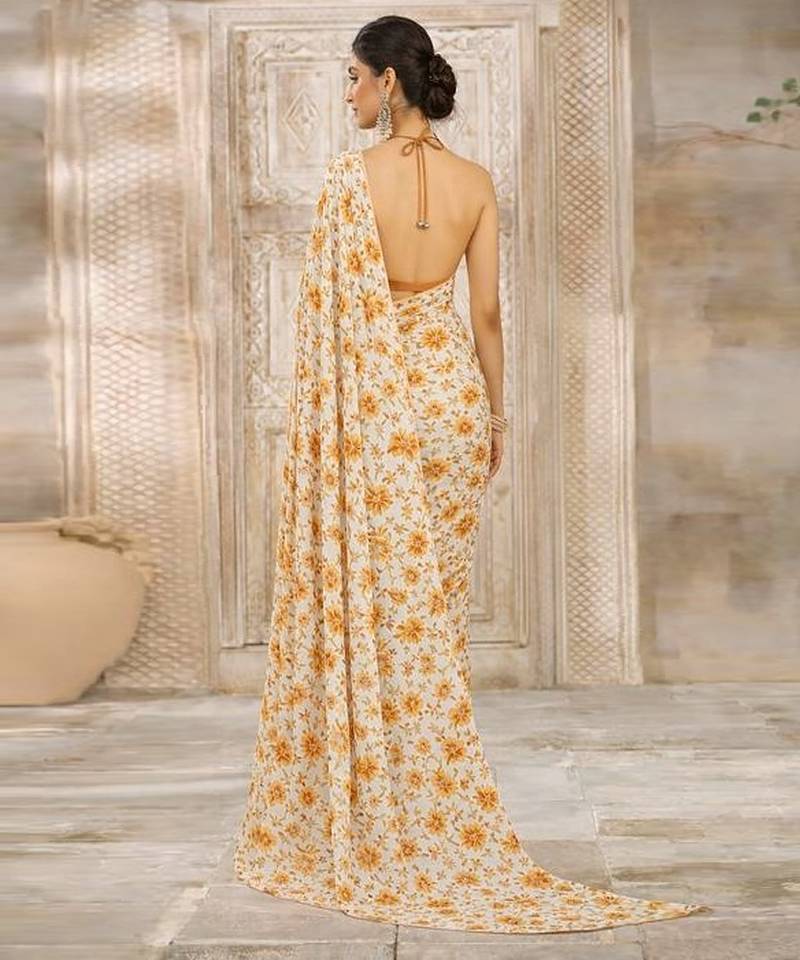 | Product Name | Ivory Printed Crepe Pre Draped Saree Set | |