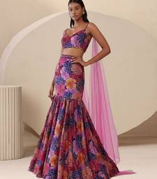 Multicolor printed crepe lehenga set