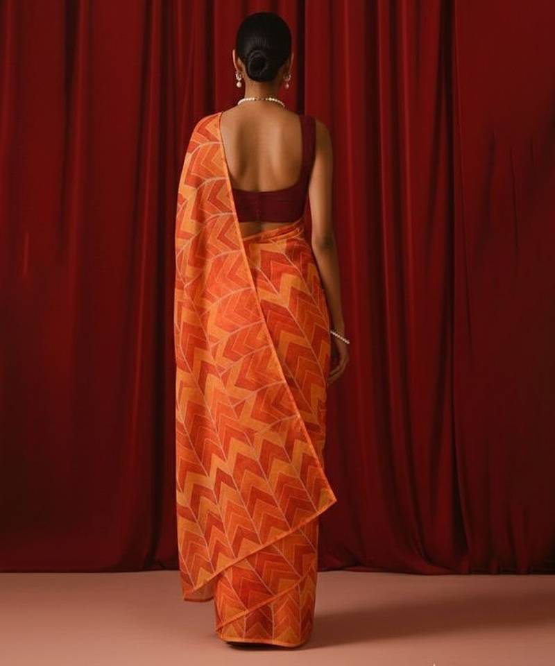| Product Description | This Orange Printed Georgette Pre Draped Saree Set Features Vibrant Prints That Enhance Its Festive Appeal. The Lightweight Georgette Fabric Ensures Graceful Movement And Comfort. The Pre Stitched Drape Allows Effortless Styling. Ideal For Celebrations, Parties, And Festive Gatherings.
