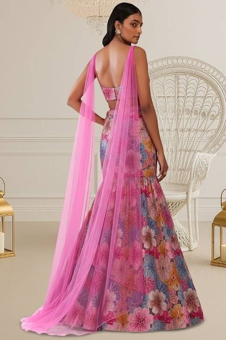 | Product Name | Pink Floral Print Crepe Lehenga Set | |