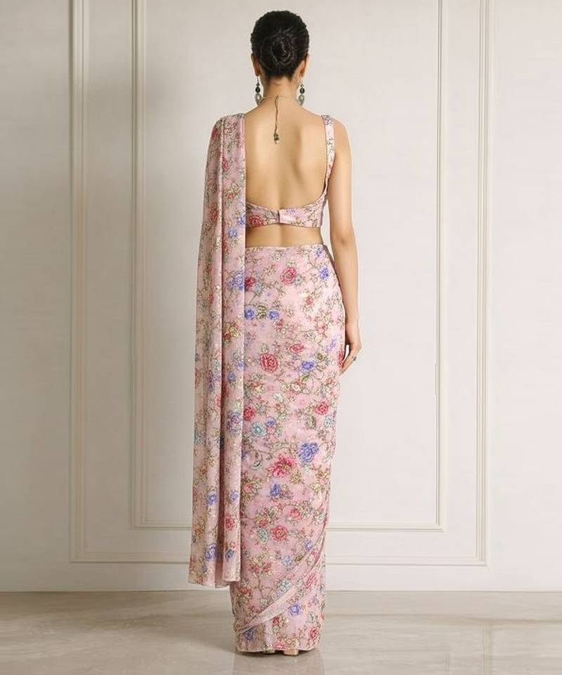 | Product Name | Pink Printed Crepe Pre Draped Saree Set | |