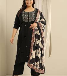 Plus size floral embroidered thread work kurta with trousers & dupatta