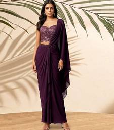 Purple embroidered georgette pre draped saree set
