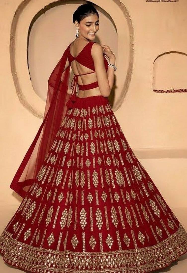 Product Name Red Embellished Georgette Lehenga Set