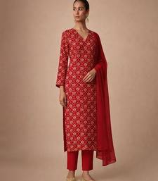 Red printed silk kurta set