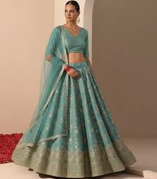 Turquoise blue embroidered tissue lehenga set