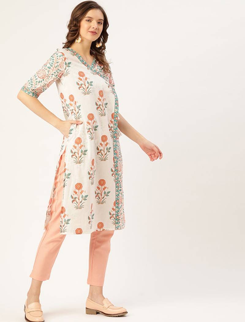 | Product Name | White & Peach Coloured Ethnic Motifs Printed Pure Cotton Kurta | |