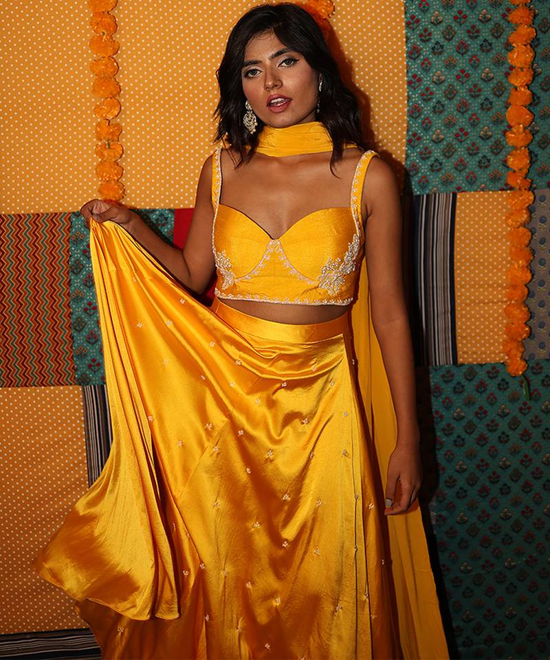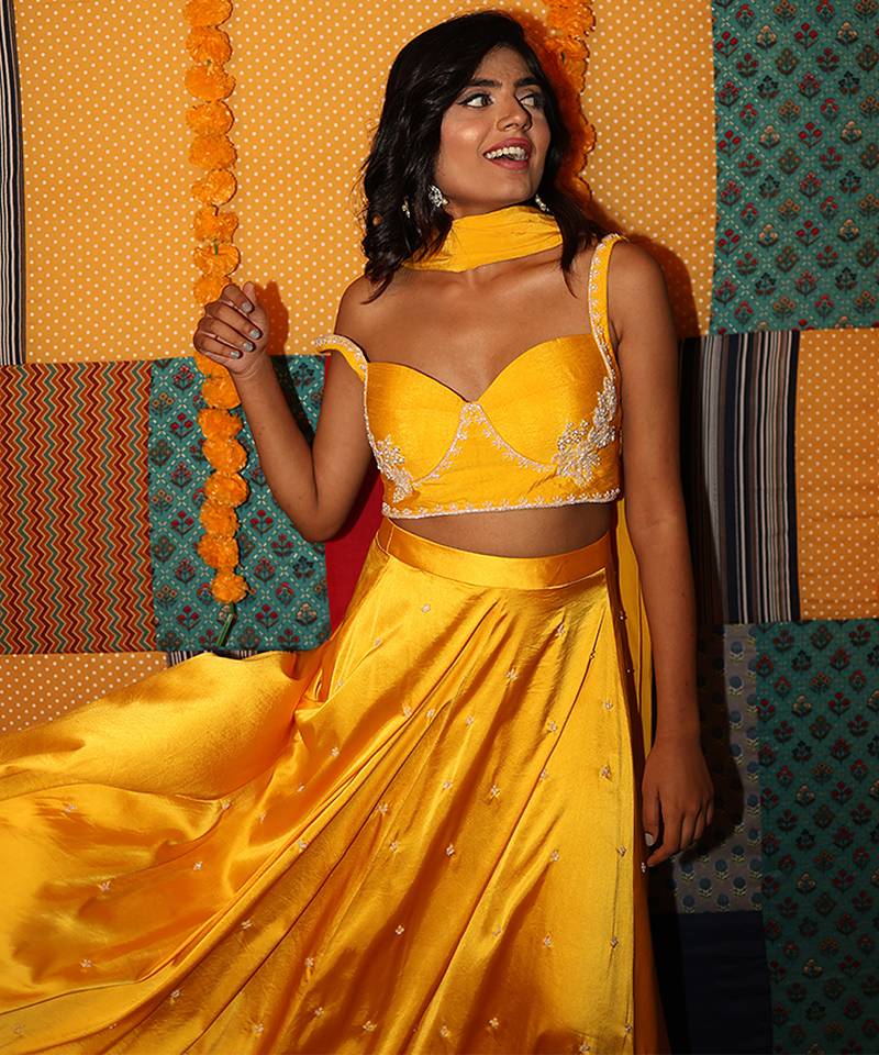 | Product Name | Yellow Embroidered Satin Lehenga Set | |