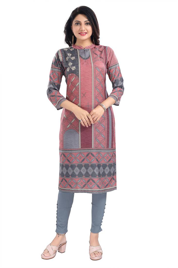 | Product Name | Cherished Coral Designer Digital Print Masleen Fabric Long Kurti Tunic | |