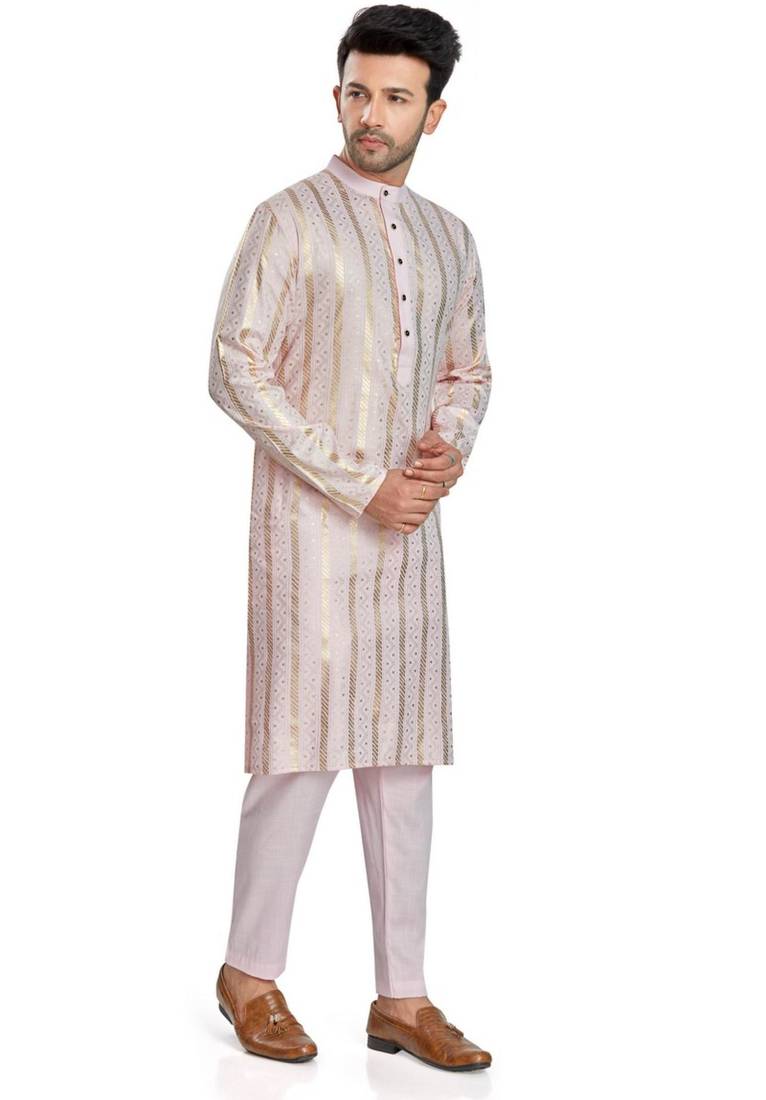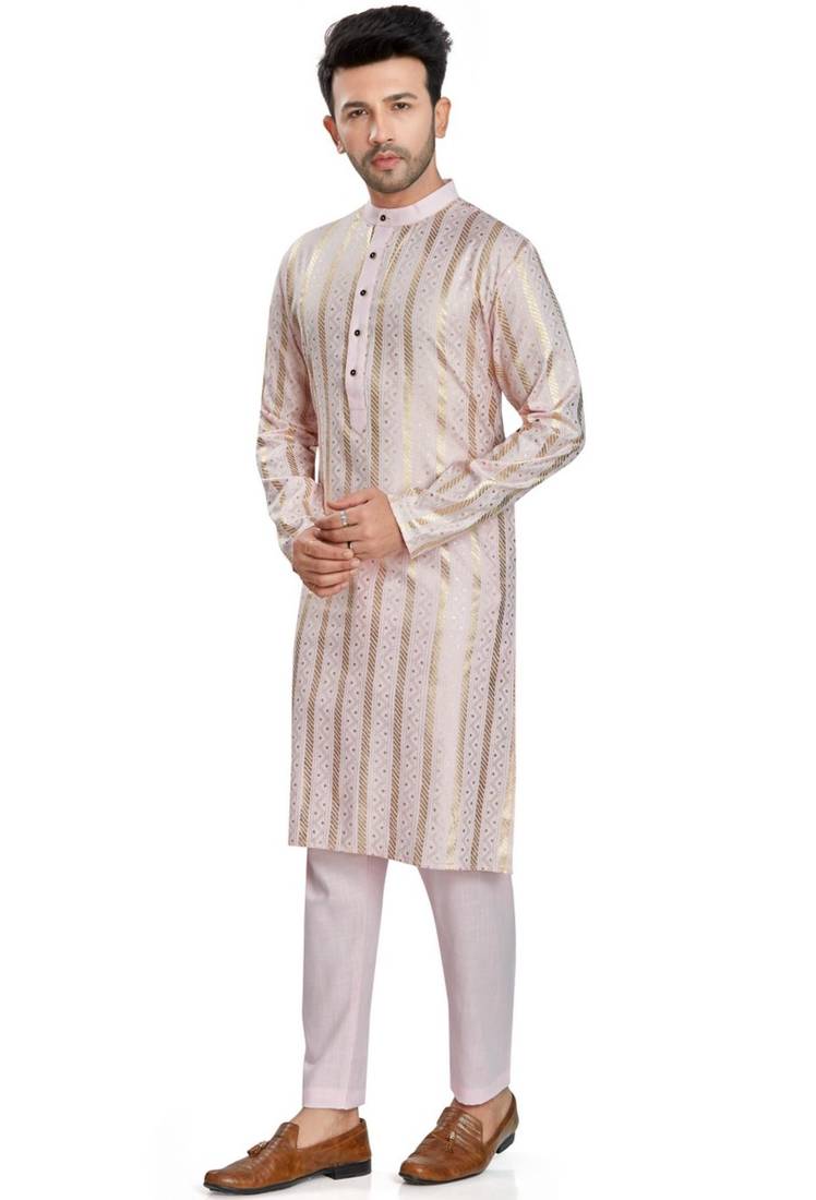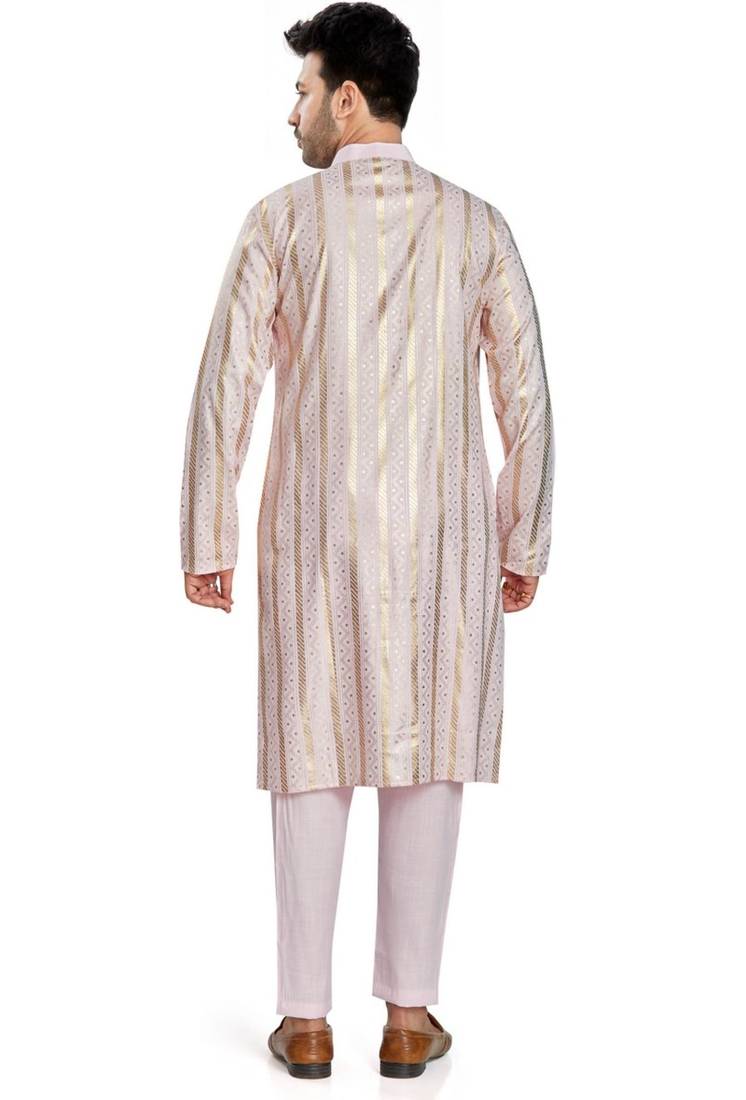 Baby pink hand block golden foil printed kurta viscos kurta payjama etnic wear :: festive wear