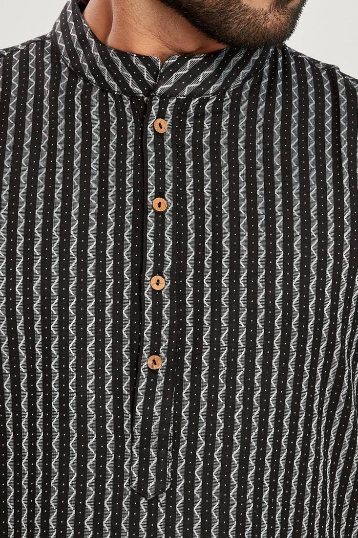 Product Description | Black Handloom Fabric White Vertical White Woven Striped Design Traditional / Ethnic Wear |