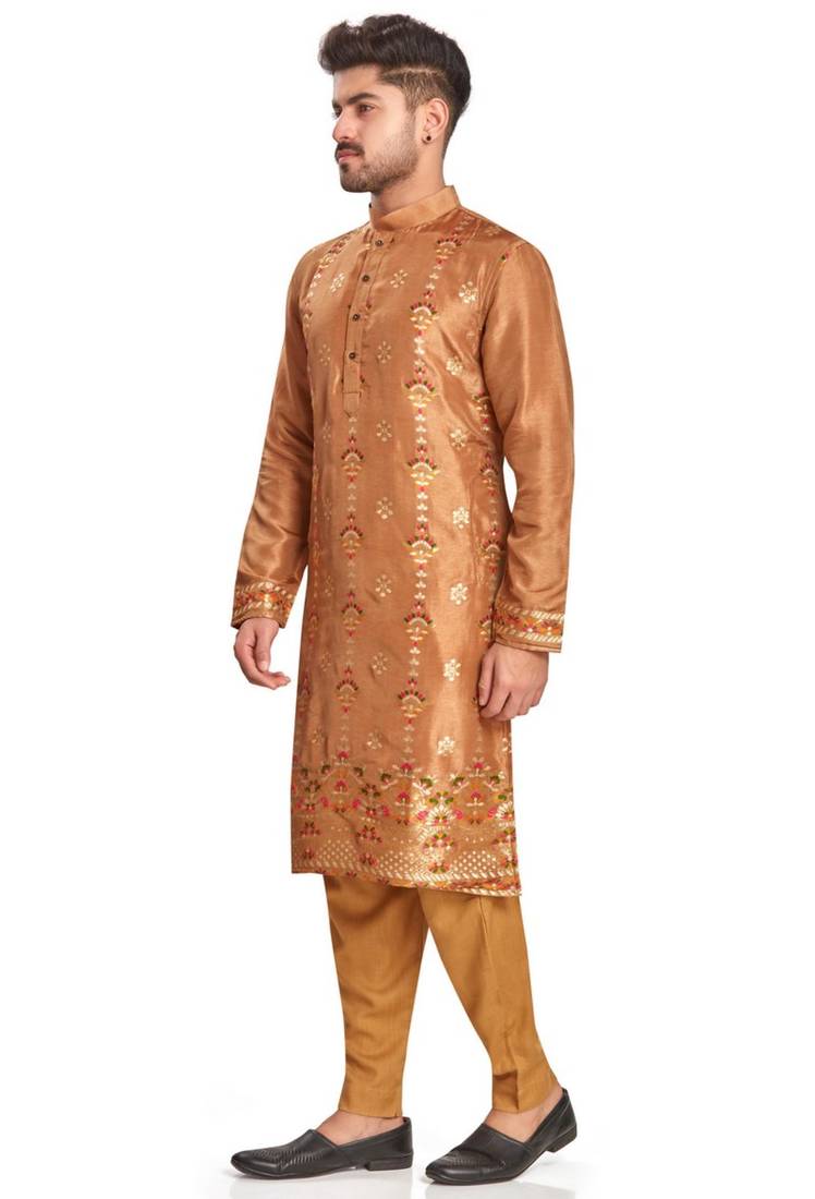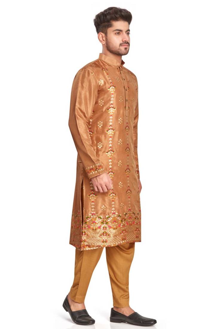 Product Name | Brown Hand Block Printed Kurta With Embroidery Banarsi Silk Kurta Payjama Etnic Wear / Festive Wear | |