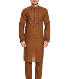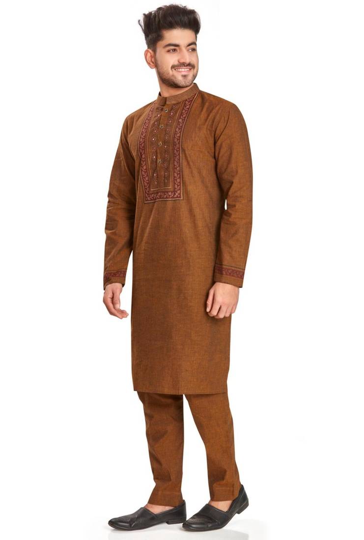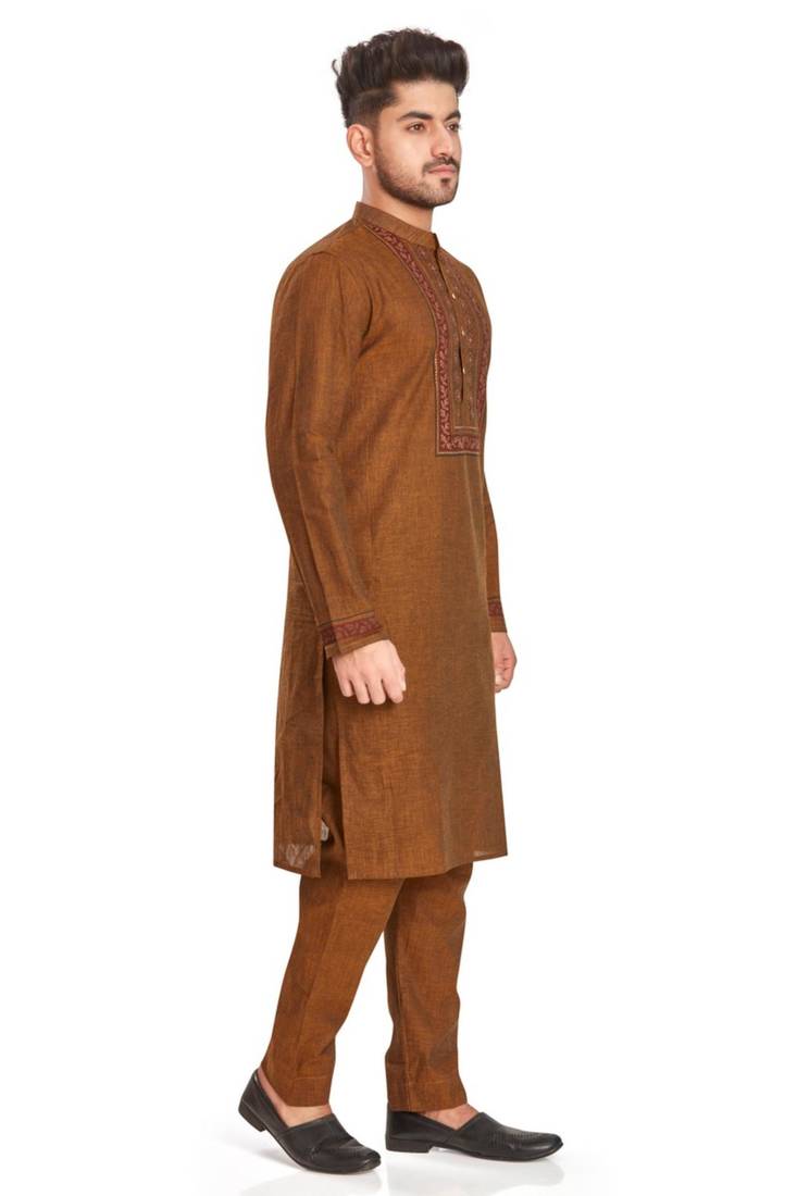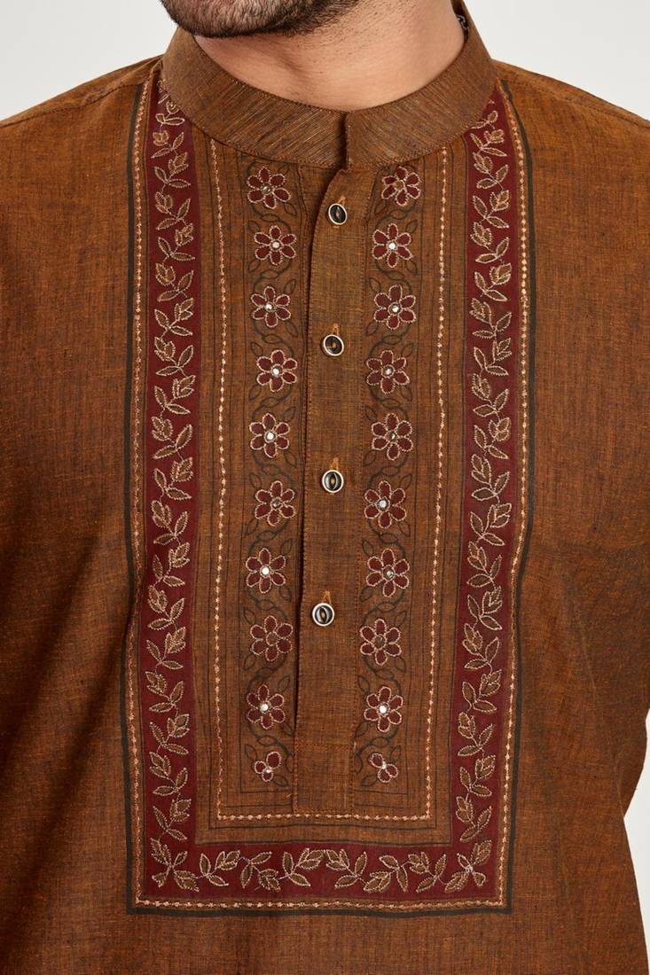 Product Name | Brown Hand Block Printed Kurta With Embroidery Viscos Kurta Payjama Etnic Wear / Festive Wear | |