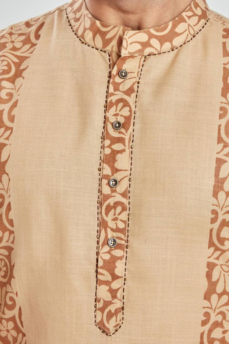 Coffee brown hand bl;ock printed kurta with embroidery viscos kurta payjama etnic wear :: festive wear