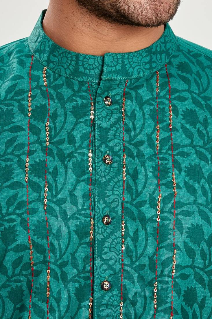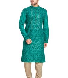 Emberald green hand block kurta with embroidery viscos traditional kurta payjama etnic wear :: festive wear