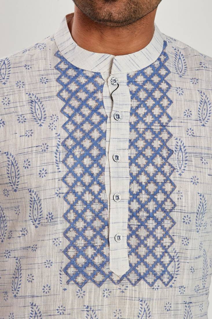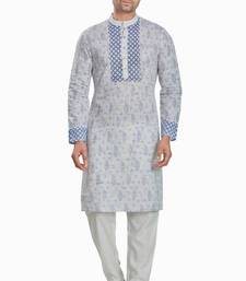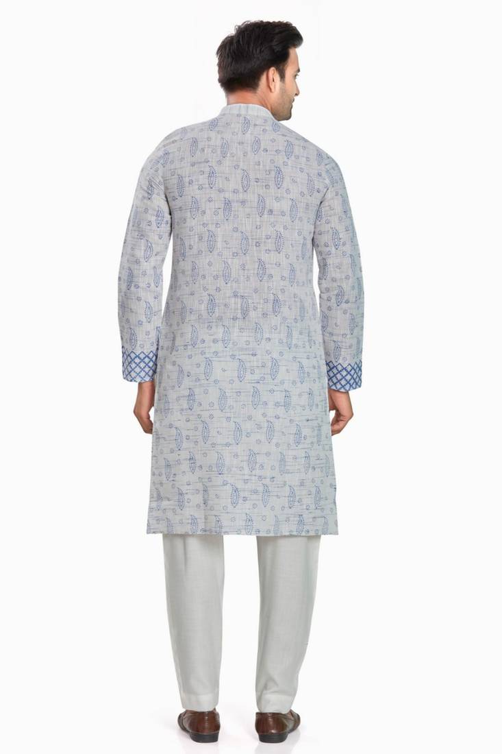 Grey hand block printed kurta with embroidery viscos kurta payjamaetnic wear :: festive wear