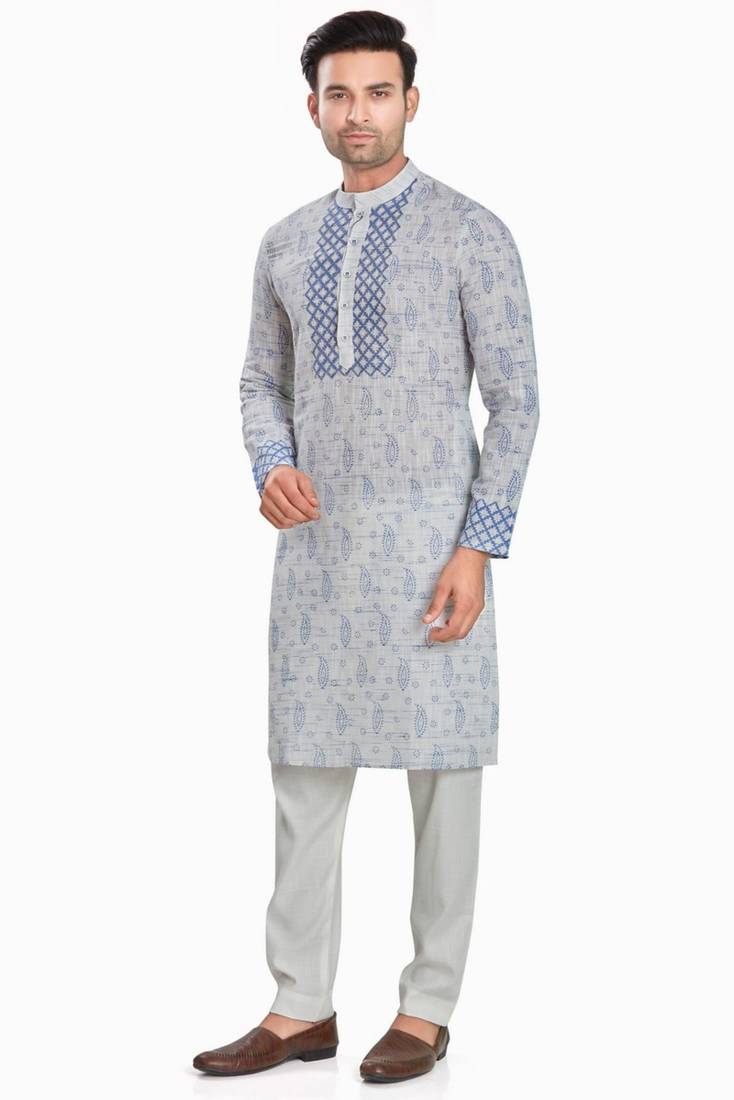 Product Name | Grey Hand Block Printed Kurta With Embroidery Viscos Kurta Payjamaetnic Wear / Festive Wear | |