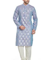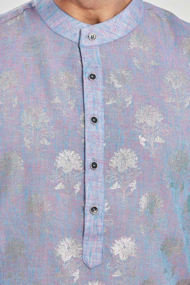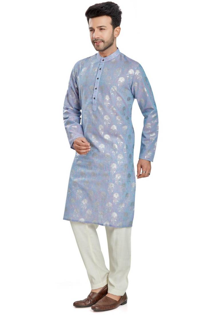 Light blue hand block silver foil print viscos kurta payjama etnic wear :: festive wear