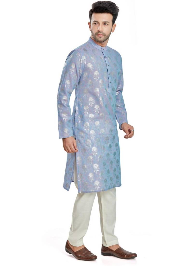 Product Name | Light Blue Hand Block Silver Foil Print Viscos Kurta Payjama Etnic Wear / Festive Wear | |