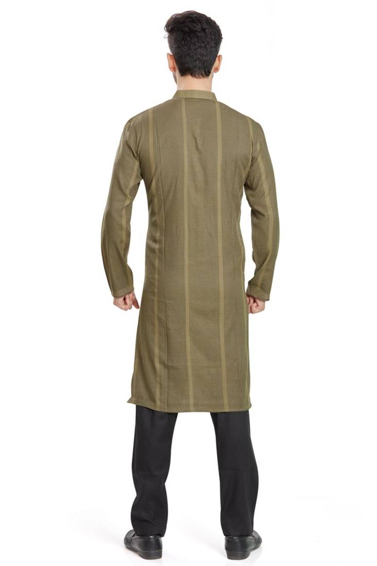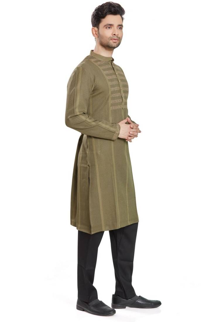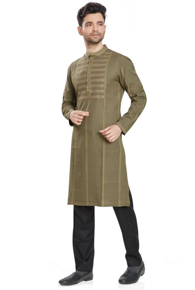 Olive green hand block printed kurta with embroidery viscos kurta payjama etnic wear :: festive wear